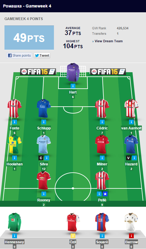 Официальный английский fantasy-футбол. Ревью 4-го тура