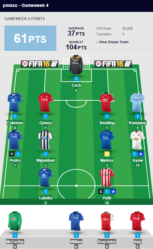 Все, что нужно знать о старте сезона «Ман Сити», — это наличие 6 человек из стана «горожан» в DreamTeam FPL после 4-х туров. Харт (25 очков), Коларов (37), Компани (36), Санья (33), Туре (31) и Сильва (26). Самое время пожалеть, что по правилам fantasy в команде может быть лишь 3 игрока из одного клуба.