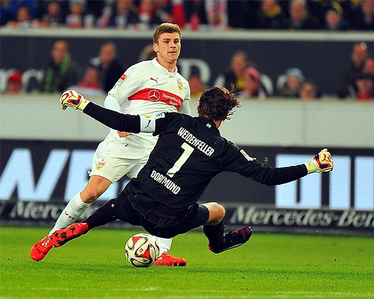 К девятнадцати годам Вернер пережил в «Штутгарте» пять смен тренера. Интегрировал его в бундеслигу Томас Шнайдер, ставший потом ассистентом Лева в сборной. Два года назад, сменив уволенного Бруно Лаббадию, Шнайдер поставил в основу на домашний матч с «Хоффенхаймом» 17-летнего форварда, знакомого ему по юношеской команде «Штутгарта», тот сделал две голевые передачи, и «Штутгарт» после трех поражений на старте выиграл 6:2. В сезоне-13/14 несовершеннолетний шваб забил четыре мяча. В феврале Вернер стал самым молодым игроком, сыгравшим 50 матчей в бундеслиге. Правда, в прошлом сезоне Вернер чаще выходил на замену, потому что летом-14 «Штутгарт» купил на его позиции Гинчека и Костича, но все равно успел забить три мяча.