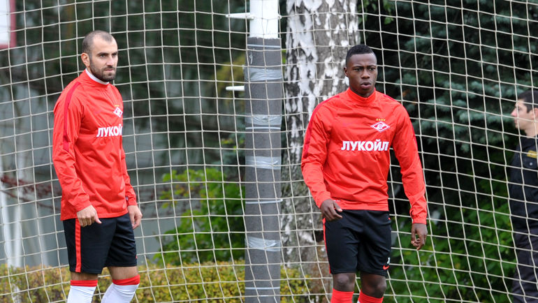 Вчера. Тарасовка. Квинси ПРОМЕС с партнером по атаке "Спартака" Юрой МОВСИСЯНОМ (слева). Фото Никита УСПЕНСКИЙ, "СЭ"