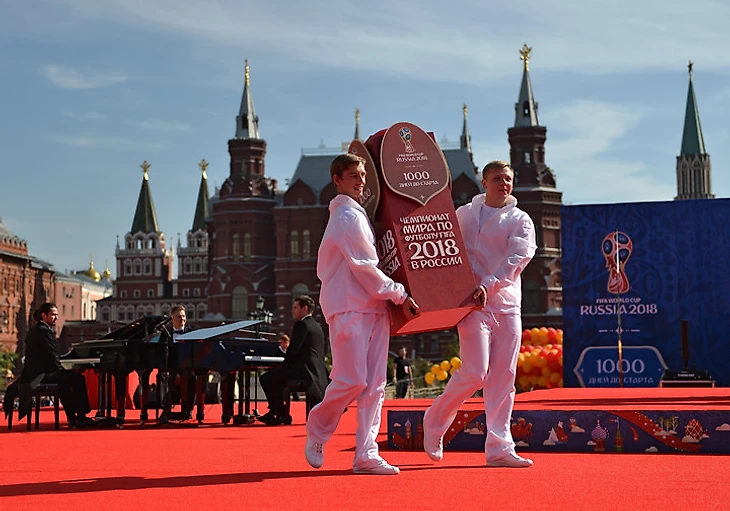 За 1000 дней до чемпионата мира в России в Москве провели масштабную церемонию с запуском часов, отсчитывающих время до старта.