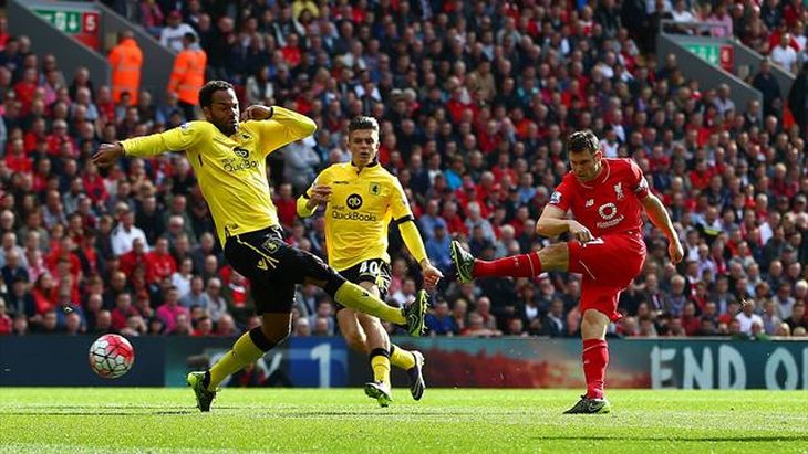 MrSidims: Да, в этом плане было довольно неприятно, особенно из-за того, как эмоционально праздновал Джеймс свой гол. Но он молодец, его можно без преувеличения назвать MVP первого тайма, да и всего матча, временами у меня создавалось ощущение, что он был на поле абсолютно везде: и на правом фланге, и на левом, и в центре полузащиты, и на острие атаки. Касательно этого эпизода хотелось бы (нет, на самом деле очень не хотелось бы) отметить некоторую неповоротливость центральных защитников Астон Виллы, которые будто застыли внутри штрафной после того, как Вествуд ошибся и оставил у себя за спиной игрока с мячом. Я бы не стал тут воспевать дифирамбы нападению Ливерпуля, как в том эпизоде, так и в целом в матче. Игроки не показывали ничего выдающегося в плане командного взаимодействия, но при этом были сильны индивидуально, что и привело к голу Милнера и дублю Старриджа, но о нём несколько позже.