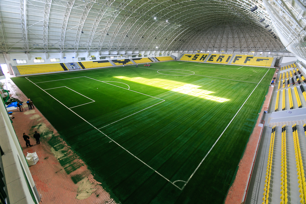 На Крытом стадионе спорткомплекса «Шериф» завершается установка нового искусственного поля голландской фирмы Greenfields. После завершения установки в течение месяца будет производиться тестирование данного газона. Если оно пройдёт успешно, поле получит наивысшую оценку – «2 звезды», которую нужно будет в последующем подтверждать.