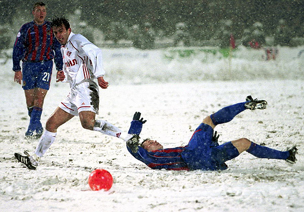 В плане проведения матча организаторам надо было «влепить» жирную «двойку»! Но сама игра получилась весёлой. Из-за сильнейшего снегопада матч задержали на 2 часа. Вышедшие на газон (если в тот момент так можно было назвать поле стадиона Стрельцова) футболисты вместо привычной разминки поиграли в снежки и повытаптывали на снегу различные фигурки, а затем ушли в «подтрибунку». Поначалу несколько солдат лопатами убирали снег с газона, но и они стали не поспевать за стихией. Тогда, за четверть часа до начала матча, к делу подключили снегоуборочные машины, вспахавшие поле, словно огород. Выглядело всё просто ужасно. Но даже эти усилия были напрасны – за полчаса поле снова покрылось белым ковром. Вот оно – русское «эль классико»… Игроков «Спартака» с верхних рядов стадиона почти не было видно – их белая форма сливалась с абсолютно белым снежным полотном (хорошо хоть играли красными мячами), а вратарь Руслан Нигматуллин пяткой протаптывал снег, обозначая свою штрафную площадь. Но даже в таких условиях кое-какой комбинационный футбол у команд получался – три гола в ворота друг друга они всё же забить смогли.