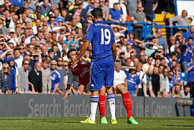 Главным событием 6-го тура чемпионата Англии текущего сезона стало поведение испано-бразильца в матче с «Арсеналом». Испанец несколько раз откровенно атаковал защитника «канониров» Лорана Косельни и потолкался с другим игроком лондонцев Габриэлом Паулистой. После матча дисциплинарная комиссия пересмотрела спорный эпизод и постановила – отрешить зачинщика и провокатора от футбола на три игры. Если Моуринью к подобным подлым поступкам своего подопечного привык, то вот тренер сборной Испании Висенте дель Боске мириться с таким поведением не намерен. В заключительных матчах отборочного этапа Евро-2016 Коста не помог команде. Есть версия, что на решение испанского наставника повлиял эпизод в минувшем матче с «канонирами».