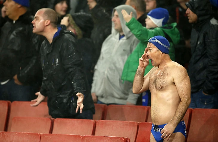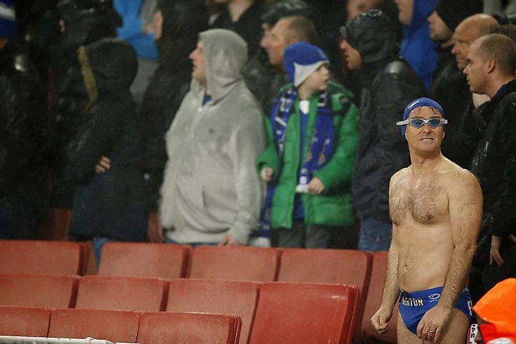 В Лондоне снова дождь. Эти болельщики «Эвертона» выглядели соответствующе.