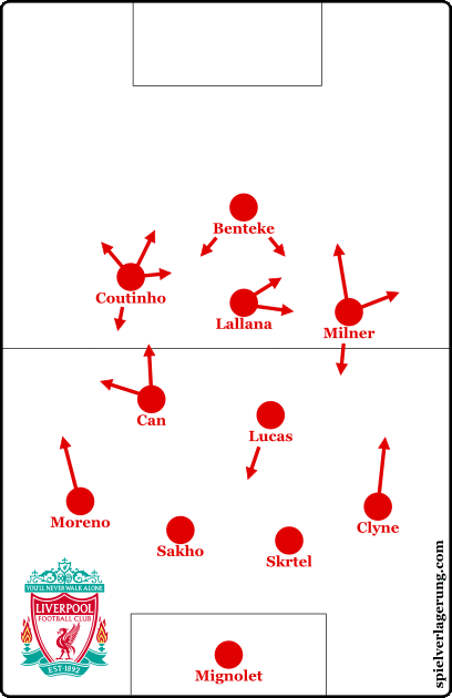 На сайте Spielverlagerung (http://spielverlagerung.com/2015/10/26/liverpool-southampton-11-klopp-draws-again-with-multiple-formation-changes/ большое спасибо Jarek27 за ссылку) на примере матча с Саутгемптоном разбирают, как у Клоппа работает прессинг - приходя к выводу, что команда при немце старается играть в диагональный прессинг, отсекающий игроков задней линии соперника от центральной зоны.