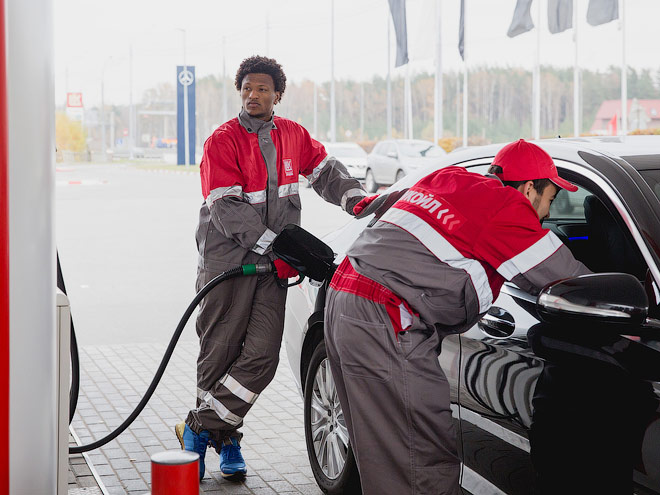 На один день спартаковцы трансформировались в обычных работников заправки. Мероприятие приурочено к 25-летию ПАО «Лукойл». Различные спортсмены по всей России в ближайшие месяцы будут выполнять функции простых людей из нефтяной отрасли — от обычного пистолетчика АЗС до инженера завода, геолога и бурильщика. В общем, тех самых товарищей, что приходят болеть за них на стадионы. Ну или хотя бы открывают бутылочку напитка из четырёх букв и оккупируют собственный диван перед телевизором.
