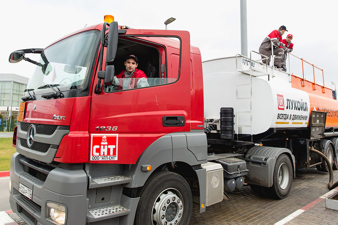 «В плане безопасности подумали, что лучше не надо меня за руль?» — пытается понять правила фотосессии Широков. Впрочем, Роман и сам через несколько минут катит бензовоз. Без всяких проблем.