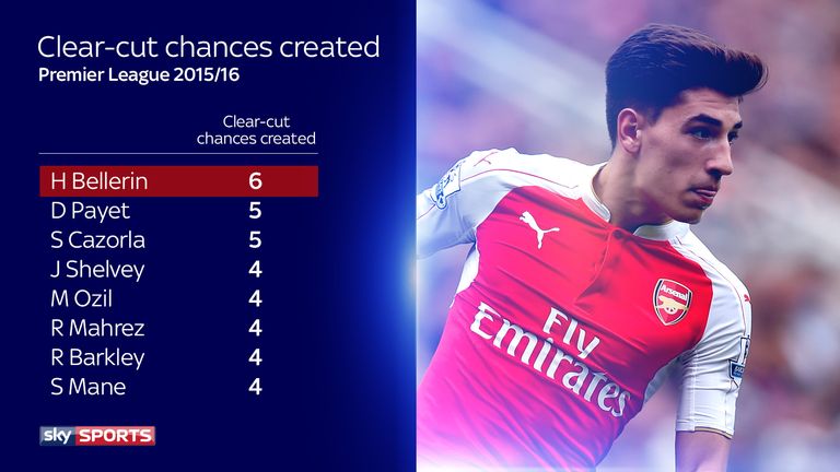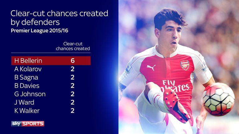 По данным Opta, Бельерин создал больше стопроцентных моментов* (6), чем кто-либо другой в Премьер-лиге в этом сезоне. Давид Сильва и Фабрегас прилично отстают по этим показателям, а другие защитники не создали больше 2-х моментов. В самом деле, будь форварды "Арсенала" более расчетливы в завершении атак, число ассистов Бельерина также могло бы значительно возрасти.