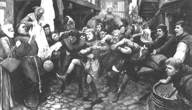 В 1314 году английский король Эдвард II издал указ о запрете игры в мяч в большинстве городов. Это было вынужденной мерой, так как тогдашний футбол сопровождался не только шумом, но и беспорядками, которые в то время были очень даже нешуточными. Дело в том, что британцы не особо заморачивались над правилами футбола: не было четких размеров площадки и количества игроков. В одном так называемом матче могли сыграть около сотни людей, которые всеми методами пытались доставить мяч в ранее оговоренную часть города, которая и заменяла ворота. Иногда дело доходило до того, что британцы играли просто деревня на деревню. Само собой, что зачастую после матчей нескольких его участников и простых прохожих могло не остаться в живых. Бессмысленный и беспощадный футбол царил на улицах британских городов В 1349 Эдвард II запретил футбол еще и в Лондоне, который сейчас по праву считается футбольной столицей мира. Конечно, народ был недоволен подобным отношением к любимой игре со стороны королевской семьи, пытаясь всячески обойти закон. В дальнейшем английские короли только ужесточали запреты, в то время когда в Италии футбол сразу стал любимой игрой народа. «Кальчо» было занятием аристократов, когда в других странах игры с мячом играли обычные люди. Историки утверждают, что Леонардо да Винчи и Николо Макиавелли был заядлыми поклонниками этого вида спорта. Во Франции средневековый футбол назывался «ла суль», а вместо мяча использовали мочевой пузырь свиньи, набитый тряпками. Но в 1369 году французский король Карл V запретил абсолютно все народные игры, дабы избежать массовых скоплений населения. Король Эдвард II — первый монарх, запретивший футбол Конечно, никакие запреты не смогли повлиять на настроение народа, который продолжал любить игру в мяч. Несмотря на то, что каждый следующий английский король ужесточал меры наказания за занятия футболом, это никого не останавливало. Британцы попросту решили сделать этот вид спорта более цивилизованным. Пройдя сквозь все запреты и остановки в развитии, футбол пережил настоящее рождение в начале 19-го века, когда английские студенты все чаще стали собираться, чтобы решить, чьи навыки в игре с мячом сильнее. Правила тогда вызывали множество разногласий. Что примечательно, в то время арбитры по-прежнему не принимали участия в играх, а за правилами следили капитаны команд. Уже можно было говорить о духе fair-play, если учесть, что лидеры коллективов тогда могли спокойно принять решение об удалении своего же партнера по команде за грубую игру. Первые общие правила появились в 1846 году, когда все больше и больше футболистов возмущались, что во многих регионах Англии играют по-разному. Британские студенты смогли начать перерождение футбола К примеру, Лондонский и Кембриджский колледжи настаивали, что играть нужно круглым мячом, не используя руки, тогда как команда университета Регби настаивала на овальном мяче и «легализации» рук в футболе. К слову, стороны так и не сумели договориться, что дало толчок для рождения двух аутентичных видов спорта. Уже тогда стало понятно, что развитие этого вида спорта не остановить: через несколько лет стали появляться первые профессиональные клубы, которые проводили между собой огромное количество товарищеских матчей. Такие встречи стали пользоваться большой популярностью у народ