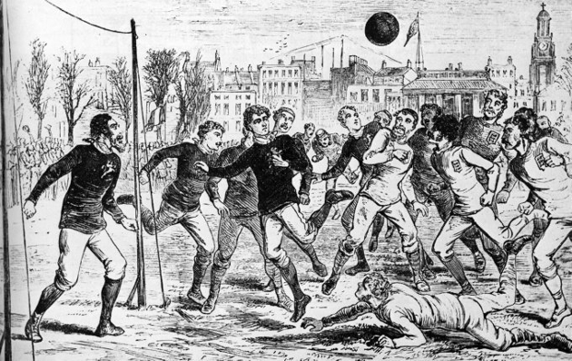 Именно так выглядели первые футбольные матчи в Британии Изначально британцы играли в футбол во время празднования масленицы, когда мужчины делились на две команды и старались загнать снаряд, который тогда заменял им мяч (чаще это был мочевой пузырь свиньи, но бывало, что играли даже отрубленными головами – прим. ред.), в так называемые ворота соперников.