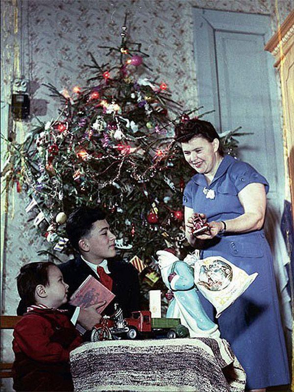 Только после войны начали по-настоящему складываться традиции празднования Нового года в СССР. Стали появляться елочные игрушки: вначале очень скромные — из бумаги, ваты и прочих материалов, позднее — красивые, яркие, сделанные стекла и похожие на украшения елок дореволюционного времени.