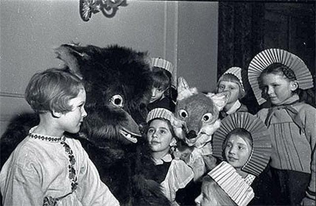 Во-вторых, нужно было обеспечить ребенка билетом на новогоднюю елку, подарком, костюмом снежники из марли или нарядом зайчика и мандаринами. Подарок, в составе которого были и карамельки, и яблоки, и грецкие орехи, предоставлял родителям профком. Мечтой каждого ребенка было попасть на главную елку страны — сначала в Колонный зал Дома Союзов, а после 1954 года — на Кремлевскую елку.
