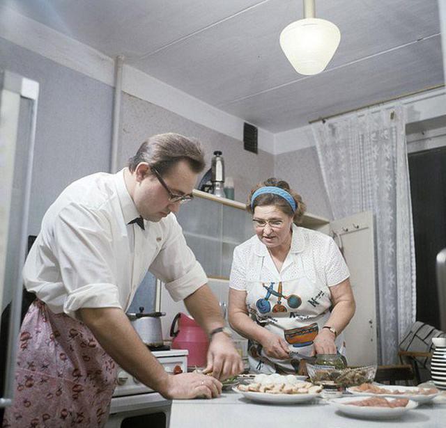 Готовиться к праздникам в СССР нужно было загодя. Во-первых, закупить продукты — то есть «достать», выстоять в часовых очередях, получить в продуктовых заказах шпроты, икру, копченую колбасу. Обязательно было приготовить оливье, холодец, заливную рыбу, морковный и свекольный салаты, селедку под шубой, открыть заготовленные с лета маринованные огурчики и помидорчики, которые ввиду отсутствия сезонных овощей были неотъемлемой частью праздничного стола.
