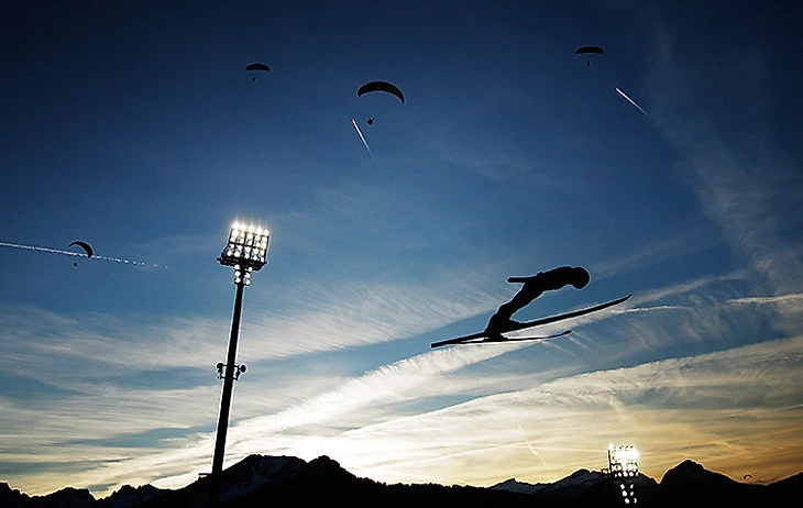 Гармиш-Партенкирхен. Рихард Фрайтаг за мгновние до отрыва.