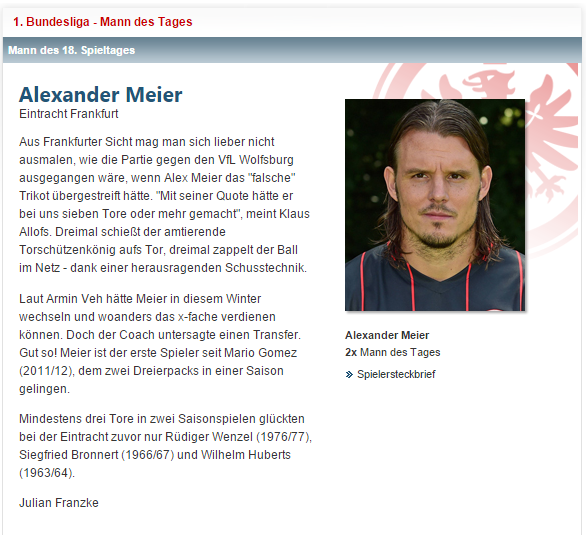 Александр Майер забил свой 83, 84 и 85 гол в Бундеслиге, тем самым обогнав по этому показателю Гюнтера Нетцера (82) и Вольфганга Оверата (83);