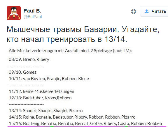 Бавария и травмы