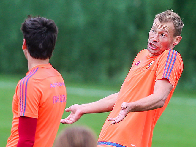 На тренировке ЦСКА Оланаре забивал, но передерживал мяч, Василий Березуцкий воспитывал Амира Натхо, а Вернблум стал Роналдинью.