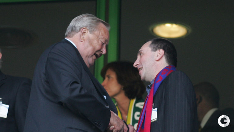 2005 год. Евгений ГИНЕР (справа) и президент УЕФА Леннарт ЮХАНССОН на финале Кубка УЕФА, в котором армейцы победили "Спортинг" со счетом 3:1. Фото Александр ФЕДОРОВ, "СЭ"