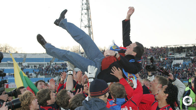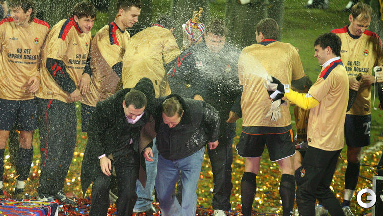 2005 год. Футболисты ЦСКА поздравляют своего президента с победой в чемпионате России. Фото Александр ФЕДОРОВ, "СЭ"