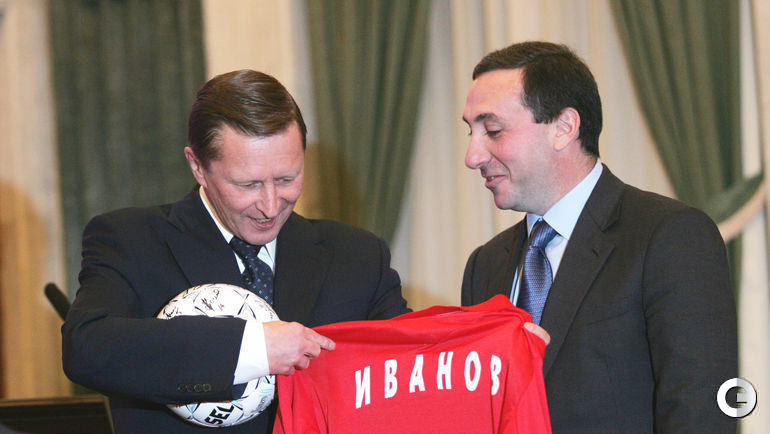 2005 год. Евгений ГИНЕР (справа) и футболисты ЦСКА на приеме у министра обороны Сергея ИВАНОВА. Фото Александр ФЕДОРОВ, "СЭ"