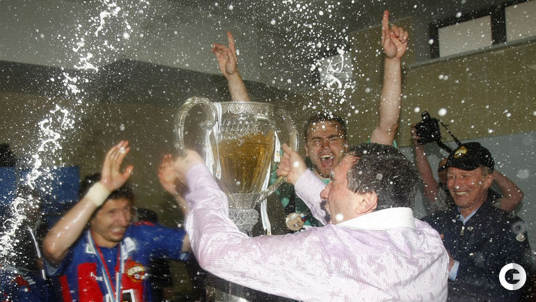 2006 год. Очередной трофей ЦСКА - Евгений ГИНЕР (в центре) с Кубком России после разгромной победы в финале над "Спартаком" (3:0). Фото Александр ФЕДОРОВ, "СЭ"