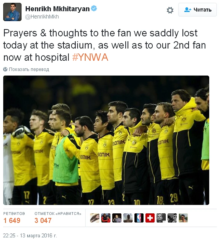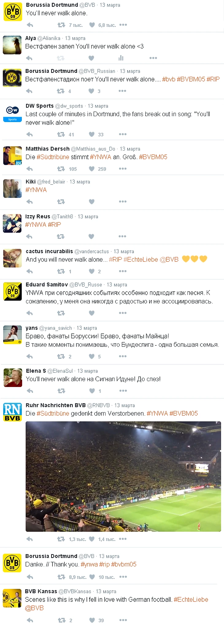 - Дорогие болельщики Дортмунда и Майнца, вы все сделали правильно! Мои искренние соболезнования родственникам.