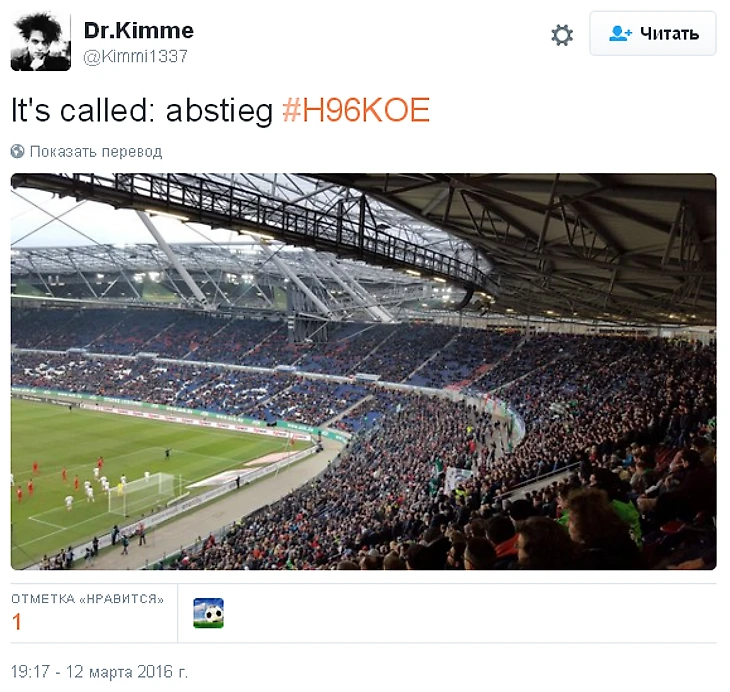 И все же несмотря ни на что – любовь не знает лиги. Так иногда пишут на плакатах немецкие болельщики в такие тяжелые для своего клуба времена. Вот и сейчас на стадионе даже у мучительно скатывающейся дивизионом ниже «Ганновера»не слишком много свободных мест. А все потому, что это Германия.