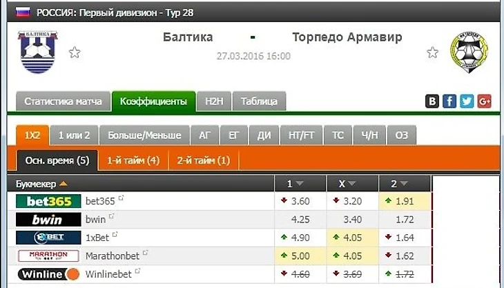 Удивительные букмекерские коэффициенты на матч ФНЛ