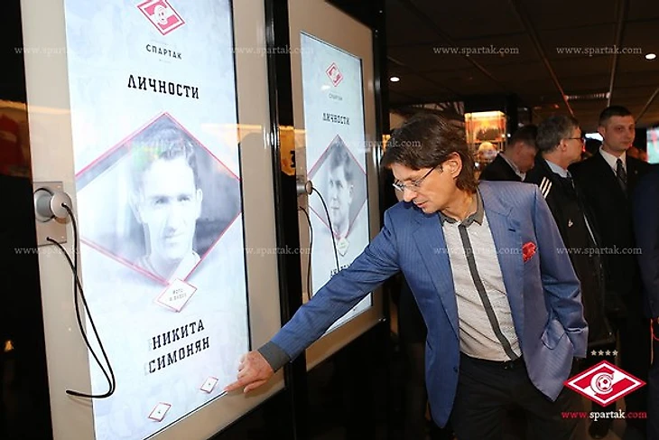 Через некоторое время он вместе с Алексеем Парамоновым, Никитой Симоняном, президентом клуба Леонидом Федуном и министром спорта, президентом РФС Виталием Мутко поучаствует в открытии этого храма спортивных святынь «Спартака» и вновь будет с нескрываемым восторгом ходить по просторным залам, где одним кликом открываются уникальные страницы истории великого клуба. Сохранившиеся кадры кинохроники, призы, которые нынешние поколения и в глаза не видели, майки лучших игроков «Спартака», знаменитые бутсы Алексея Парамонова с частицами «золотой» земли Мельбурна. Наконец, старые потертые очки Николая Петровича Старостина, его анкета, которую он заполнял в очередной раз, уже в 1984 году, повышая на учебе свою квалификацию футбольного специалиста. Листая ее электронные страницы, вице-президент клуба Наиль Измайлов восхищался в нашем разговоре: «Николай Петрович не переставал учиться, хотя в то время вроде бы уже все постоянно учились у него. В 1982-м проходил курсы, два года спустя - опять…» Но это все так – бегло. На самом же деле каждый посетитель сможет замереть здесь надолго, надев наушники, посмотреть и послушать под комментарий диктора ход того или иного сюжета. Великие голы, великие футболисты... Да, что там великие. Здесь есть имена каждого спартаковца. Причем о каждом, при желании вы можете узнать еще больше. Один клик, другой... Министр спорта Виталий Мутко в сопровождении Леонида Федуна, группы ветеранов клуба и директора музея Алексея Матвеева, передвигаясь по залам, не переставал восхищаться увиденным. По-моему, у него, как и у каждого, возникало желание что-то потрогать руками, прикоснуться к очередной спартаковской святыне, спрятанной под музейным стеклом.