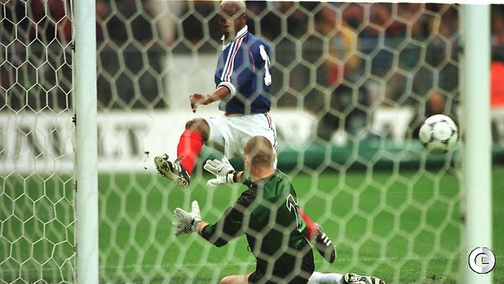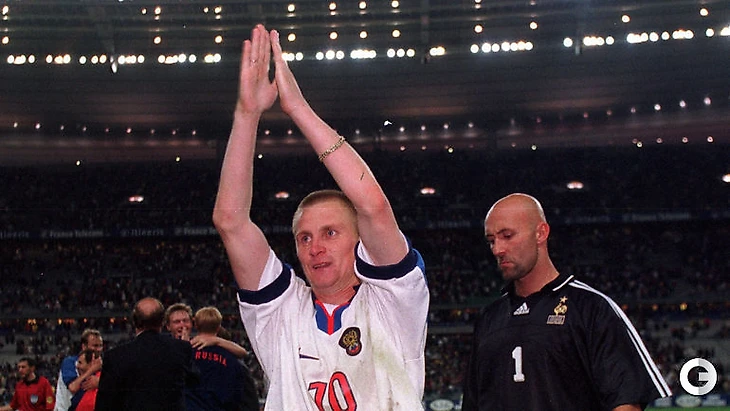 5 июня 1999. Париж. Франция - Россия - 2:3. Автор дубля в ворота Фабьена БАРТЕЗА Александр ПАНОВ. Фото Сергей КИВРИН