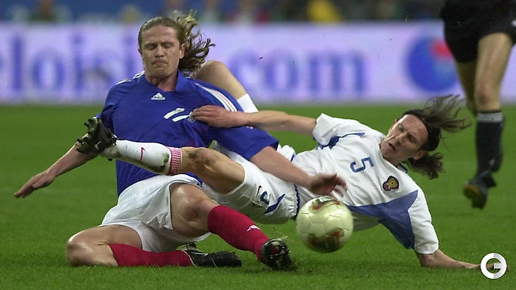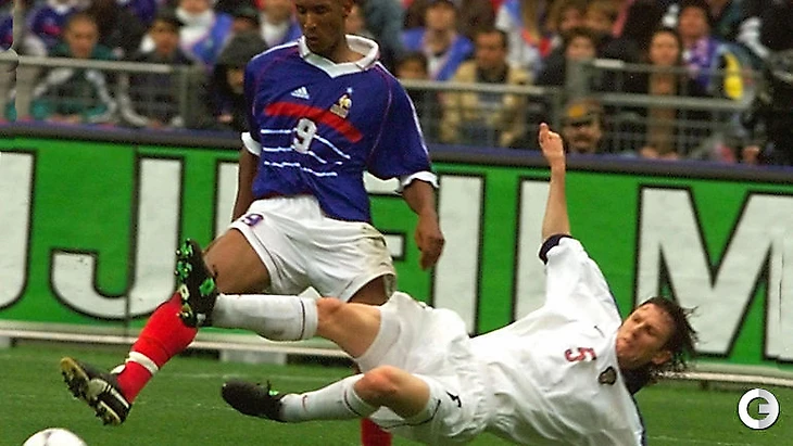 5 июня 1999. Париж. Франция - Россия - 2:3. Николя АНЕЛЬКА и Алексей СМЕРТИН. Фото Сергй КИВРИН
