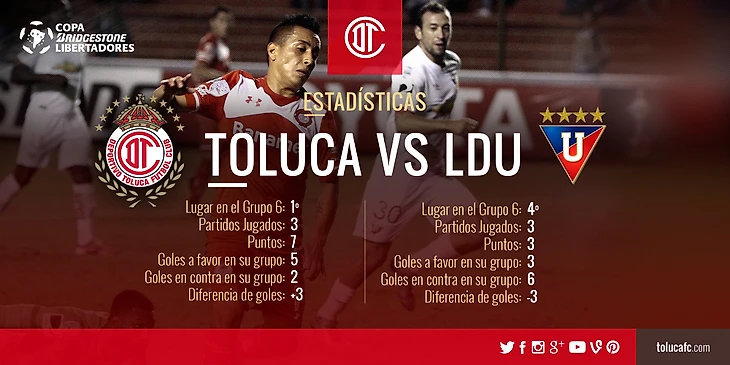 При этом две своих победы в текущем розыгрыше Либертадорес мексиканцы одержали, забивая по 2 мяча: дома 2-0 «Гремио», и на выезде 2-1 «ЛДУ». В то же время «ЛДУ» из 6 матчей проведённых на выезде в 2016 году, в трёх пропускал два и более раза – «Дельфин» 0-2, «Гремио» 0-4, «Барселона» 0-5. Победа «Толуки» и команда забьёт более 1,5 мяча, кф.1,98