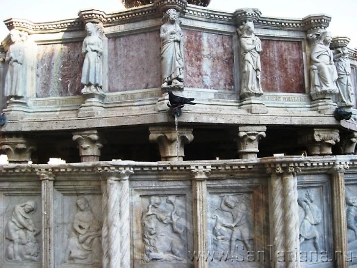 Но в Перудже все сделали по-своему. Обычно фонтан строили в последнюю очередь, а вот здесь площадь обустраивалась вокруг фонтана. Ваял (по-другому не скажешь) эту красоту Никколо Пизано со своим сыном Джованни.