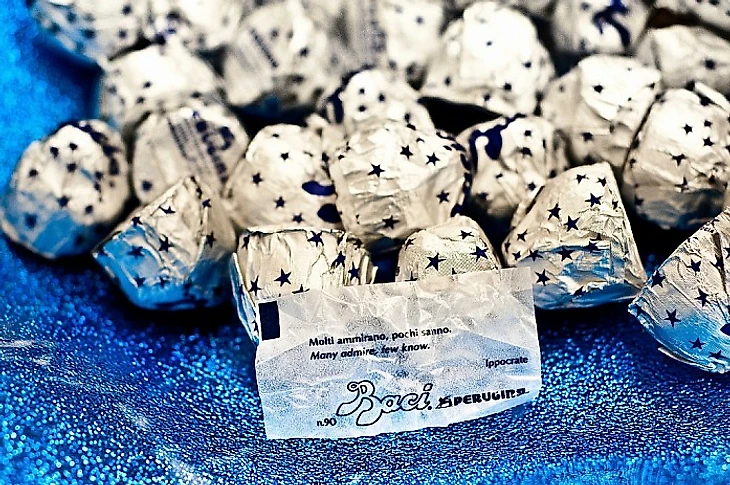 Между прочим, первое название конфеты было не таким поэтичным – Cazzotto («удар»), из-за своей неправильной формы, напоминающей кулак. Позже сын Луизы переименует эти конфеты в Baci.