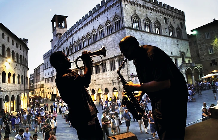 Боюсь, что народ,заглянувший к нам в бложек, успел заснуть от обилия архитектурно- исторических памятников, дат и всего остального. Если это так, то самое время просыпаться - в середине лета в Перудже собирается весь цвет мирового джаза. Как только лето, так они и собираются - порадовать себя и публику. Радуются целый месяц - на год хватает!