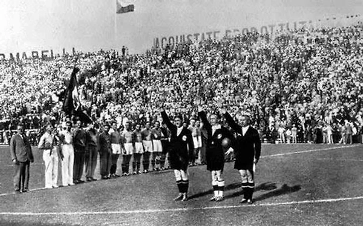 Формула самого мундиаля была предельно проста: 1/8, 1/4, 1/2, матч за бронзу и финал. Посещаемость игр не поражает воображение, в матче за третье место между Германией и Австрией сорокатысячник в Неаполе не заполнился и на четверть. В дни экономического кризиса лишнюю лиру, видимо, предпочитали не тратить. Немцы, через два года, проведут Олимпиаду значительно более эффективно (да и эффектно, что уж там говорить, какой бы мрачной не была монументальность нацистских игр), матч за бронзу между Норвегией и Польшей посетило 95 (!!!) тысяч. А выиграет футбольный турнир в Берлине, между прочим, Италия. Но на "Скуадру Адзурру", конечно же, в 1934 ходили. Впрочем, не так уж и важна посещаемость, этот турнир был сыгран для одного человека - Бенито Муссолини, чье имя носил стадион в Турине (до 2006 Комунале, а ныне Олимпико, где проводит домашние матчи Торино). Фигура лысого, крикливого вождя отбрасывает тень на весь чемпионат. Судя по всему, Муссолини был отнюдь не пассивным участником действа. Считается (неопровержимых доказательств нет), что Муссолини принимал у себя шведского арбитра Ивана Эклинда и давал подробные указания, касающиеся арбитража. Эклинд работал на трех матчах чемпионата: Швейцария - Нидерланды и на двух самых важных играх хозяев (полуфинале и финале, соответственно). Вряд ли молодой, двадцатидевятилетний арбитр из благополучной Швеции мог что-либо противопоставить одержимому победой на домашнем чемпионате, Муссолини. Эклинд судил и на следующем чемпионате во Франции, и даже на первом послевоенном в Бразилии (провел всего одну игру).