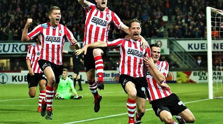 Тренером «Эксельсиора» в том самом памятном противостоянии был Алекс Пастор, а в атаке "красно-черных" выступал Роланд Бергкамп. Первый матч решающей серии плей-офф на "Ваудестейне" завершился нулевой ничьей. В ответной встрече, казалось, судьба благоволила "спартанцам". Гийон Фернандез смазал пенальти на 87-й минуте. На третьей добавленной минуте Райделл Пупон с передачи Эрика Фалькенбурга открыл счет. Но через две минуты все тот же Фернандез поверг фанатов "Замка" в шок. 1-1 и «Спарта» вылетает.