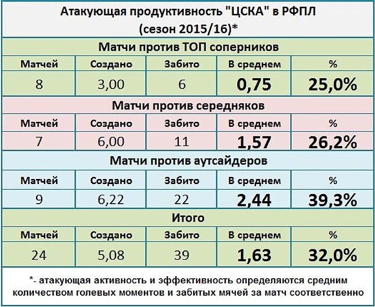 Как можно заметить количество созданных голевых моментов армейцами снижается вдали от родных пенатов, помножив это на неубедительную игру против команд первой шестерки можно было констатировать 100% отсутствие легкой прогулки у соперников «Локо».