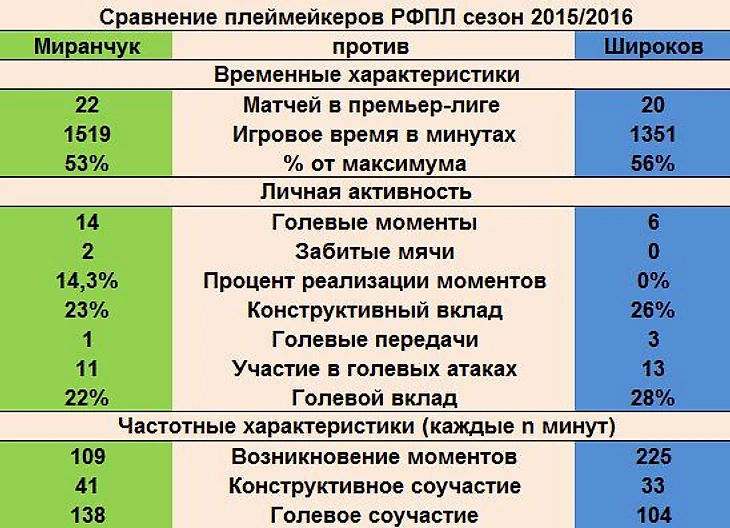Ради интереса сравнение активности Миранчука и Широкова в этом сезоне.