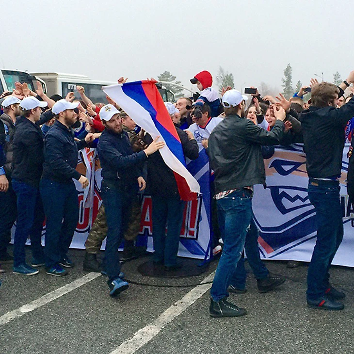 В 6 утра самолет с новыми чемпионами приземлился в Магнитогорске. Хоккеистов встречали как настоящих рок-звезд – болельщики не отпускали их из аэропорта почти час:
