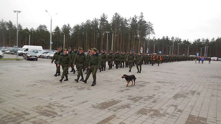 – У нас что, война началась? – провожая взглядом очередной прошедший взвод, комментирует болельщик «Динамо».