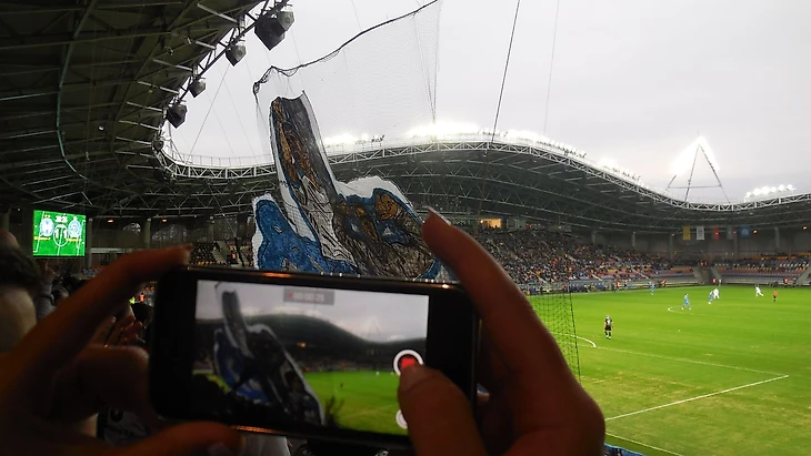 Ох и дорого же даётся красота! Мало того, что баннер скрывает значительную часть поля (а кому-то – всё поле), так ещё и флаги превращают просмотр футбола в пошаговую стратегию. Не зря говорят: хороший фанат не увидит гол команды.