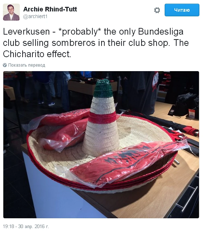 И забавный факт от немецких репортеров напоследок: «Леверкузен (возможно) единственный клуб Бундеслиги, продающий в фаншопе сомбреро. Эффект Чичарито».