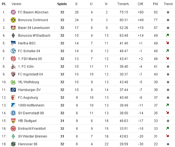 Впрочем, думаю, что напрямую вылетит Айнтрахт. Дортмунд с ними, по идее, должен разобраться, а Вердер в последнем туре не даст увезти им 3 очка с Везера... но, опять же, по идее... как оно будет на деле, никто не знает. Этим и хорош футбол (Бундеслига - в частности).
