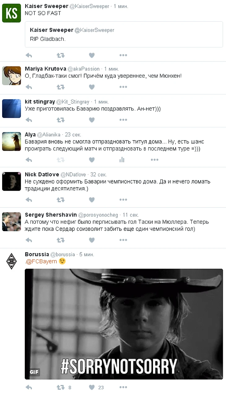 Гладбах впервые в этом сезоне Бундеслиги пропустил в первые 10 минут матча. Для «Баварии» это был самый быстрый гол в этом чемпионате.