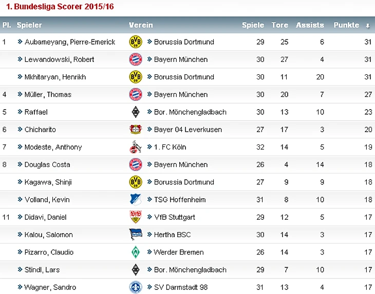 Кроме того, впервые в истории Бундеслиги два игрока «Баварии» (второй, разумеется, Левандовски с 27 мячами) преодолели отметку в 20 голов в чемпионате за сезон.
