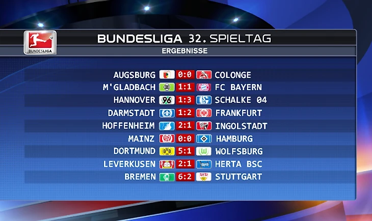 Гладбах отсрочивает чемпионство «Баварии», «Шальке» обеспечивает себе еврокубки, а «Байер» – бронзовые медали; Дортмунд громит «Вольфсбург», а стадионы в Майнце и Аугсбурге остаются без голов; Франкфурт и «Хоффенхайм» одерживают волевые победы, а «Вердер» в вынесенном матче громит «Штутгарт» и обостряет борьбу в подвале до предела. Все самое интересное на финишной прямой Бундеслиги – в нашем обзоре!