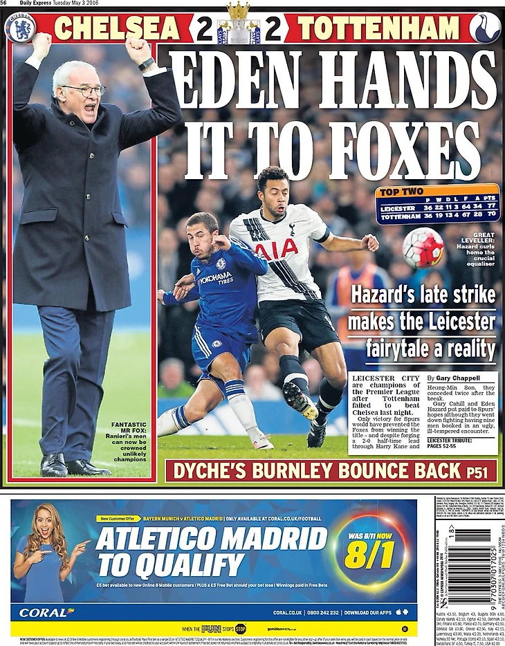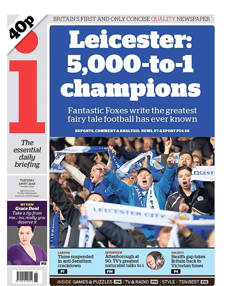 The Daily Telegraph: Чемпионы! Мечта «Лестера» с коэффициентом 5000/1 удивительно воплотилась в жизнь